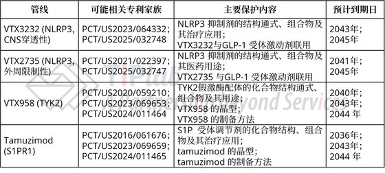 Ventyx 的专利保护策略属于典型的小分子保护策略,保护活性成分、晶型、制备方法或联用等,覆盖全球多个国家/地域,以下列出了管线可能相关的专利家族。